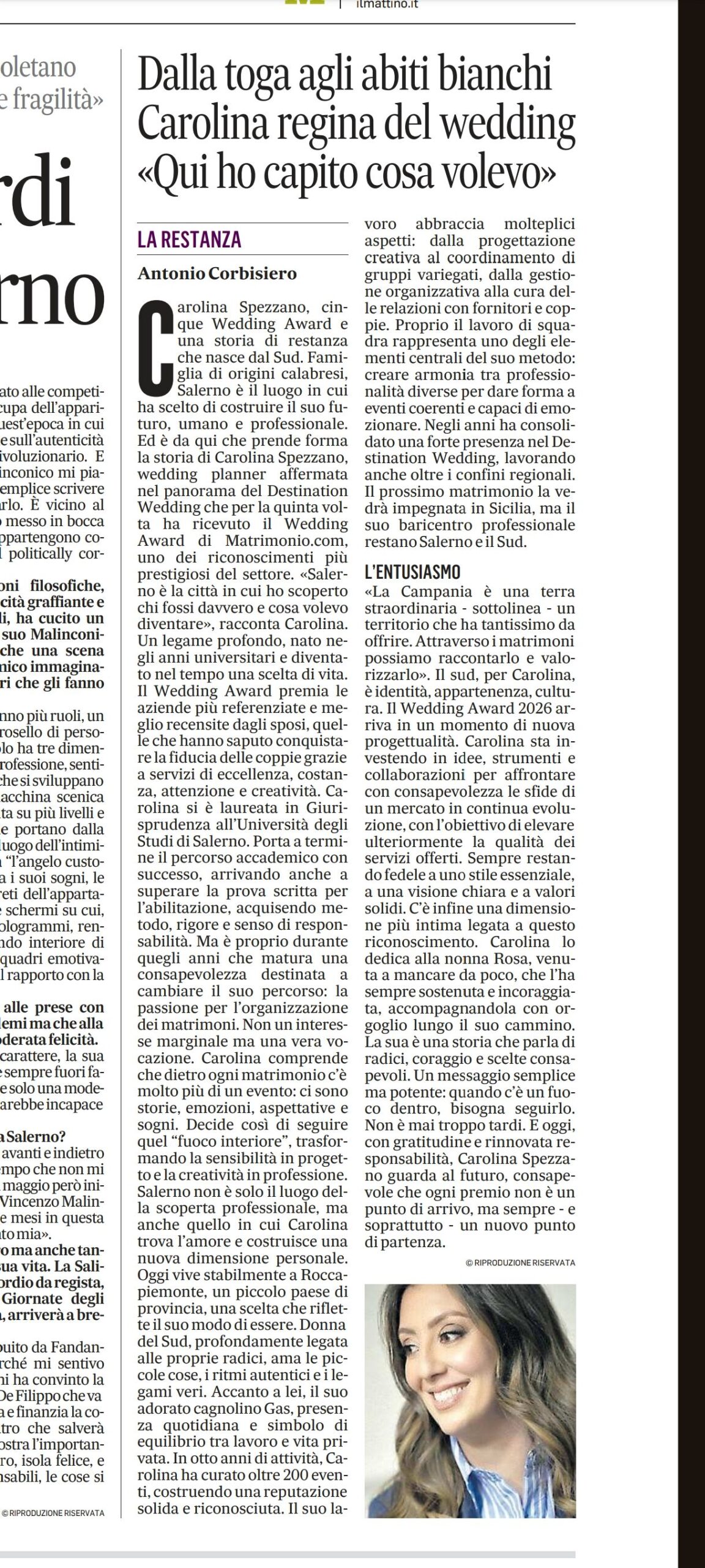 Leggere sul Mattino un articolo sul mio percorso professionale, su una passione che coltivo con costanza e che nel tempo è diventata una professione, un’azienda, mi emoziona molto.